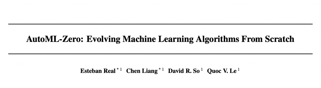 Evolving Machine Learning Algorithms From Scratch. Evolving Machine Learning Algorithms From ScratchEsteban Real Chen Liang David So Quoc LeMachine learning research has advance. In a recent ICML paper Google researchers propose an AutoML-Zero.