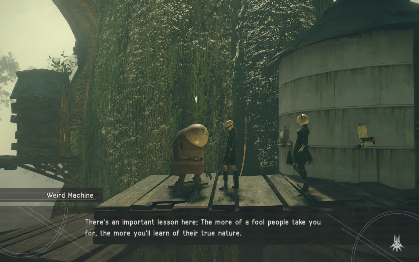 Weird Machine is a friendly unit in NieRAutomata. But if you guys still want to complete the questthen I am here to help. Weird Machine Information A machine lifeform who is endlessly mocked by the children in Pascals village.