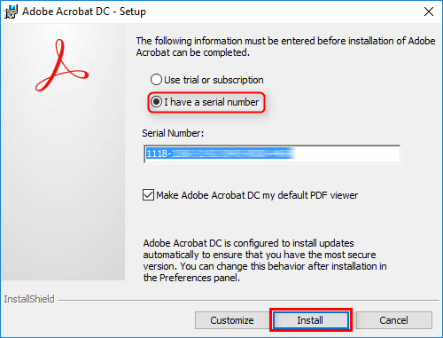 The easiest way to find the serial number for Adobe Acrobat DC or Acrobat X is with a product key search program. To see the serial number. Replace 100 with version of Adobe being used.