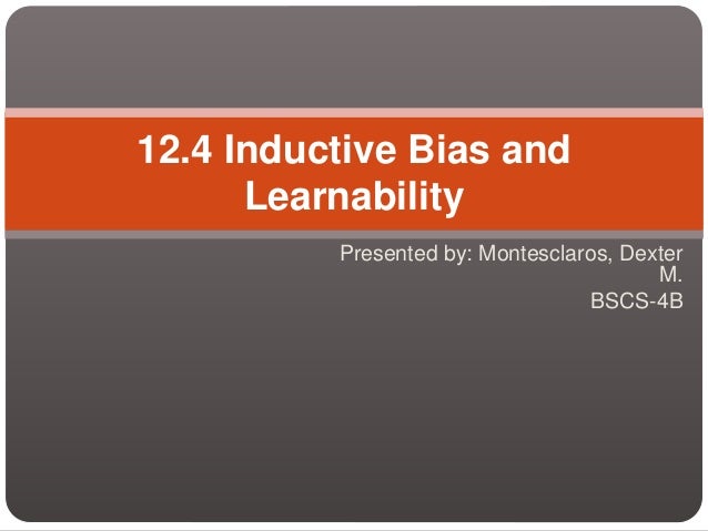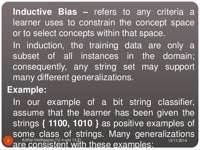 Learning Conjunctive Concepts in Structural Domains. The course covers theoretical concepts such as inductive bias Bayesian learning methods. Inductive Bias in ID3 Inductive bias is the set of assumptions that along with the training data justify the classifications assigned by the learner to future instances.