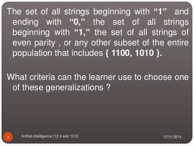 Inductive bias machine learning ppt. Inductive Learning is where we are given examples of a function in the form of data x and the output of the function fx. For example assuming that the solution to the problem of road safety can be expressed as a conjunction of a set of eight concepts. Given H as the power set of instances X ID3 has preference of short trees with high information gain attributes near the root.