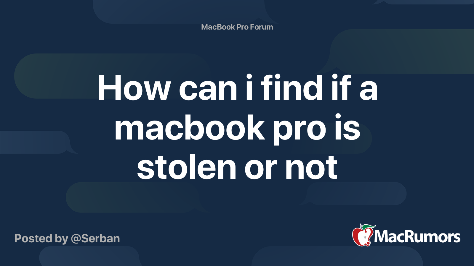 How Can I Find If A Macbook Pro Is Stolen Or Not Macrumors Forums