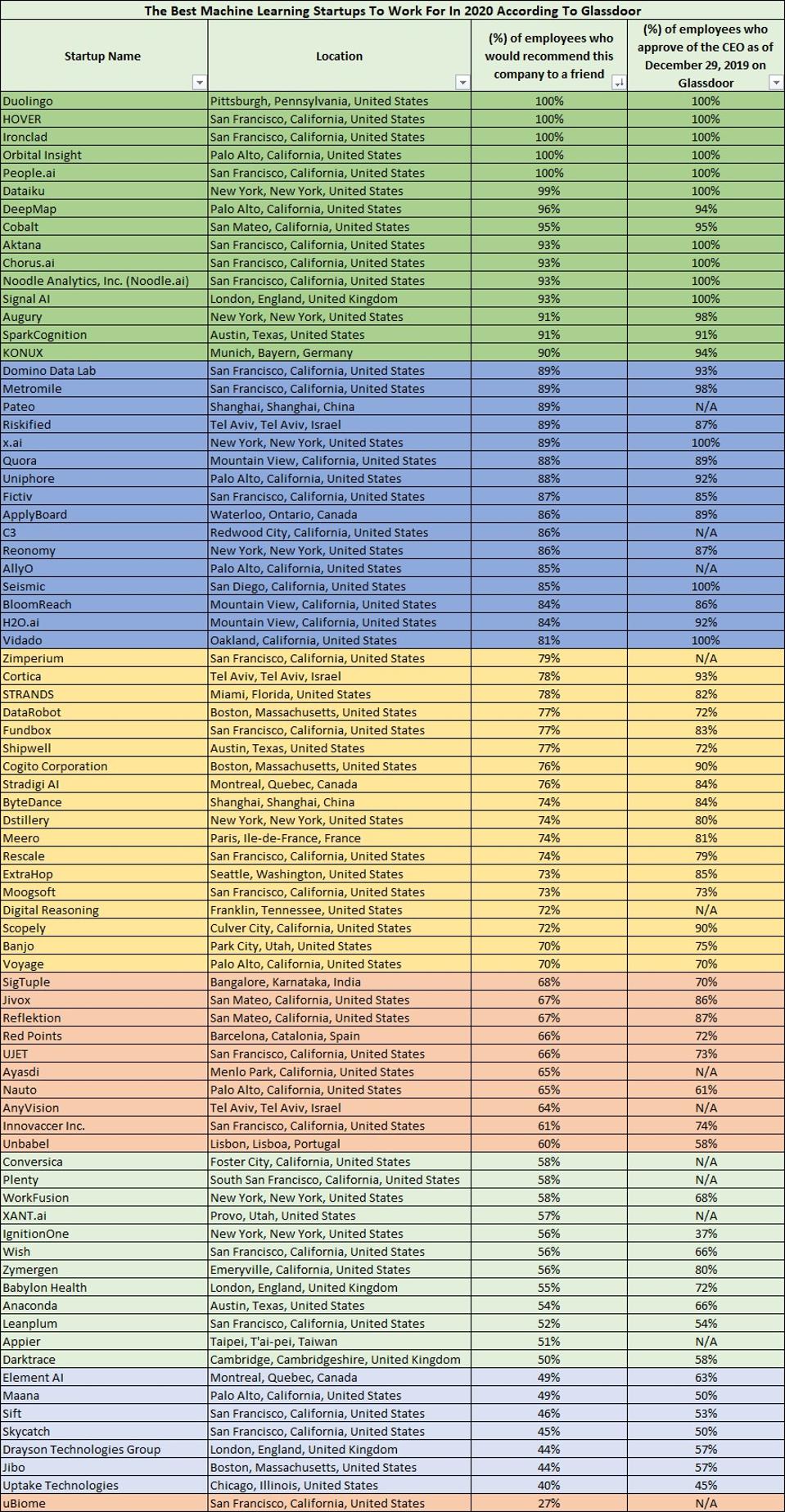 The Best Machine Learning Startups To Work For In 2020 Based On Glassdoor