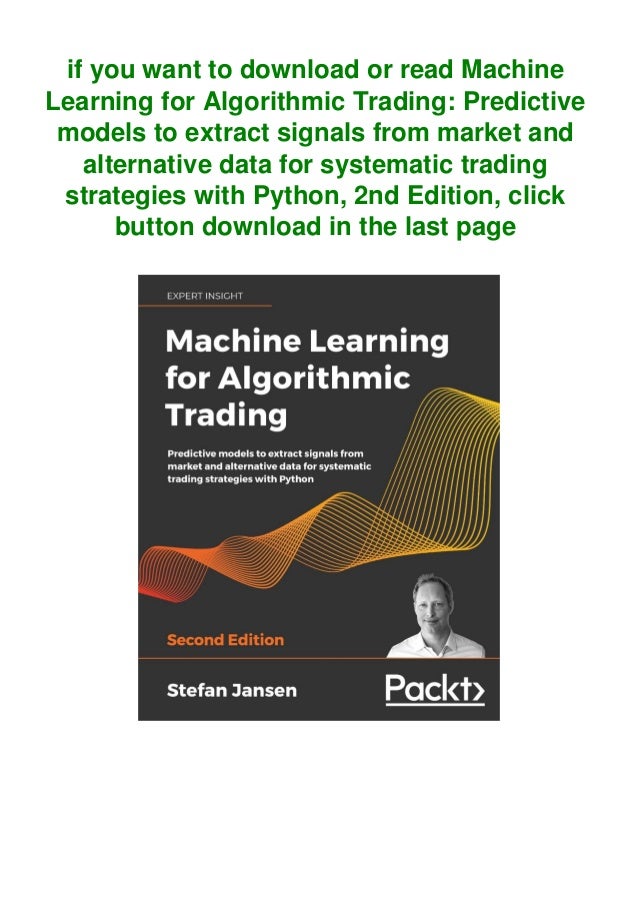 Machine learning for algorithmic trading stefan jansen pdf download. Stefan Jansen Machine Learning for Algorithmic Trading Second Edition The explosive growth of digital data has boosted the demand for expertise in trading strategies that use machine learning ML. Hands-On Machine Learning for Algorithmic Trading. FREE shipping on qualifying offers.